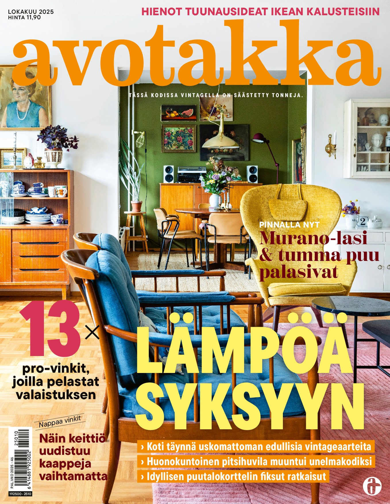 Tilaa Avotakka itselle tai lahjaksi ja ilahduta sisustuksesta kiinnostunutta ystävää tai läheistä. Jokainen numero tarjoaa uutta inspiraatiota ja oivalluksia, joita voi soveltaa helposti omaan kotiin. Lehti tuo arkeen sisustamisen iloa ja auttaa tekemään kodista viihtyisän ja toimivan.