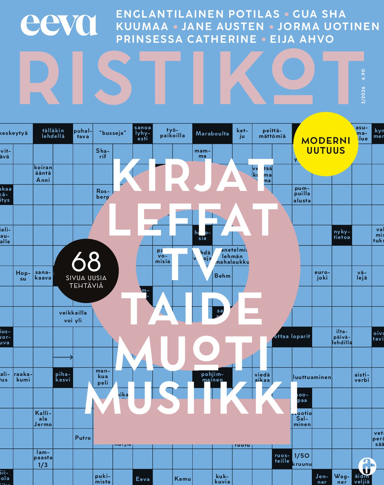 Eeva Ristikot on laadukas ja viihdyttävä suomenkielinen ristikkolehti, joka ilmestyy kerran kuukaudessa ja tuo jokaiseen kuukauteen ripauksen kulttuuria, älyllistä haastetta ja leppoisaa ajanvietettä. Lehti on suunnattu kaikille, jotka rakastavat ristikoiden ratkomista ja ovat kiinnostuneita muun muassa kirjallisuudesta, musiikista, muodista, elokuvista ja kotimaisesta kulttuurista. Eeva Ristikot tarjoaa vaihtelua perinteisiin ristikkolehtiin yhdistämällä tyylikkään ulkoasun ja mielenkiintoiset aiheet laadukkaaseen tehtävävalikoimaan.