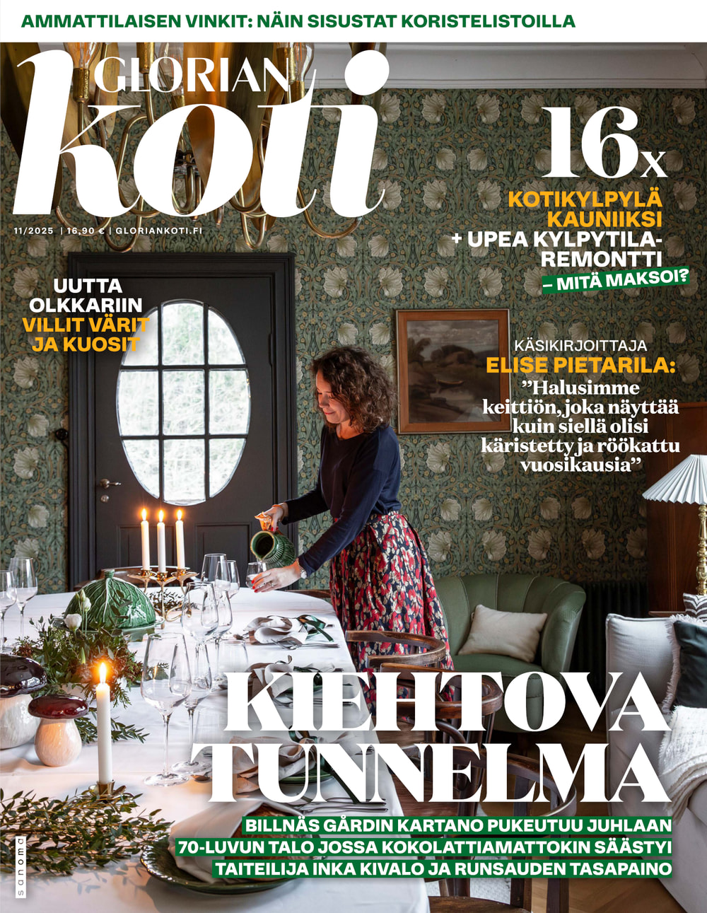 Glorian Koti on laadukas suomalainen sisustuslehti, joka tarjoaa lukijoilleen uusimmat sisustustrendit ja käytännöllisiä ideoita kodin sisustamiseen. Lehti yhdistää esteettisyyden ja käytännöllisyyden tavalla, joka puhuttelee kaikkia sisustamisesta innostuneita. Glorian Koti ilmestyy 10 kertaa vuodessa ja on saatavilla sekä printtilehtenä että digiversiona, joten voit valita itsellesi sopivimman tavan nauttia lehden sisällöstä.