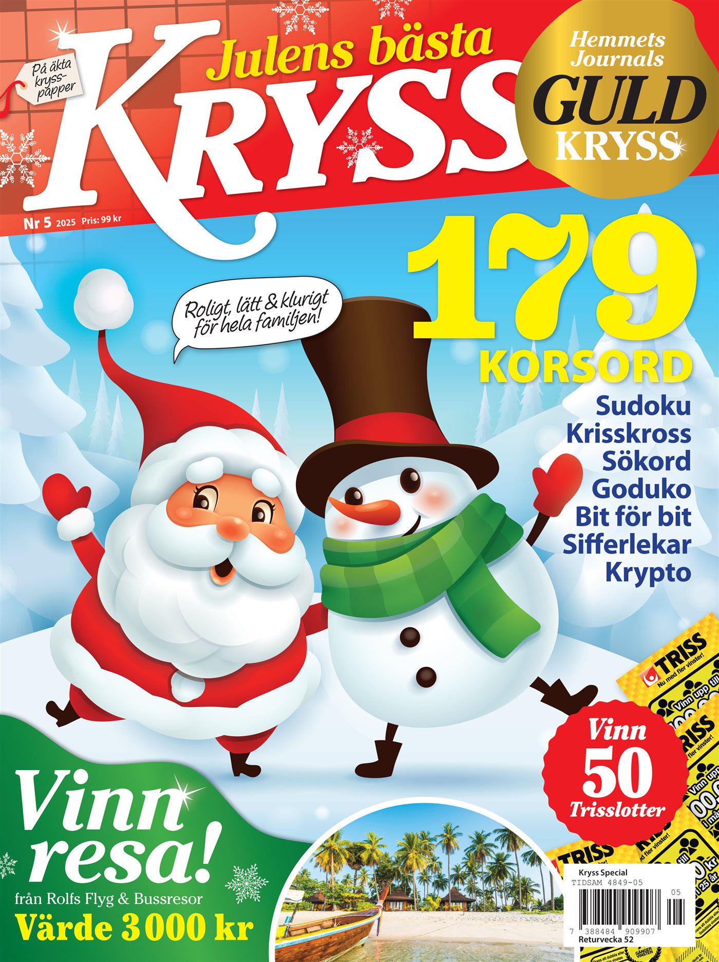 Hemmets Journals GULDKRYSS on täydellinen lehti kaikille numeropelien ystäville! Se tarjoaa laajan valikoiman sudokuja, triadokuja, pentadokuja, kakuroja ja muita haastavia numeropelejä eri vaikeustasoilla. Lehti sopii mainiosti mukaan matkalle, takkatulen ääreen, rannalle tai yhteiseksi ajanvietteeksi perheen ja ystävien kanssa. Tämä viihdyttävä lehti tarjoaa päänvaivaa ja iloa ympäri vuoden.Jokaisessa numerossa voit osallistua kilpailuun, jossa palkintona on jopa 3 000 kruunua. Lisäksi lehti arpoo 50 trislottia, ja 10 onnekasta voittajaa saavat kukin viiden trislotin paketin!