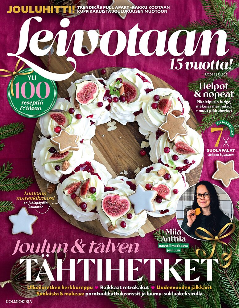 Leivotaan on lehti jauhopeukalon iloksi. Jos keittiön lämpö ja tuoreen pullan tuoksu kuuluvat lempiasioihisi, Leivotaan on juuri sinulle. Suomen suurin leivontalehti tarjoaa jokaisessa seitsemässä vuosittaisessa numerossaan yli 100 herkullista reseptiä ja ideaa, joilla onnistut arjen ja juhlan leivonnaisissa. Kolme lehteä vuodessa ovat lisäksi kauniita teemanumeroita, jotka sopivat aina ajankohtaan – olipa edessä joulun piparit, kevään juhlat tai sadonkorjuun herkut.