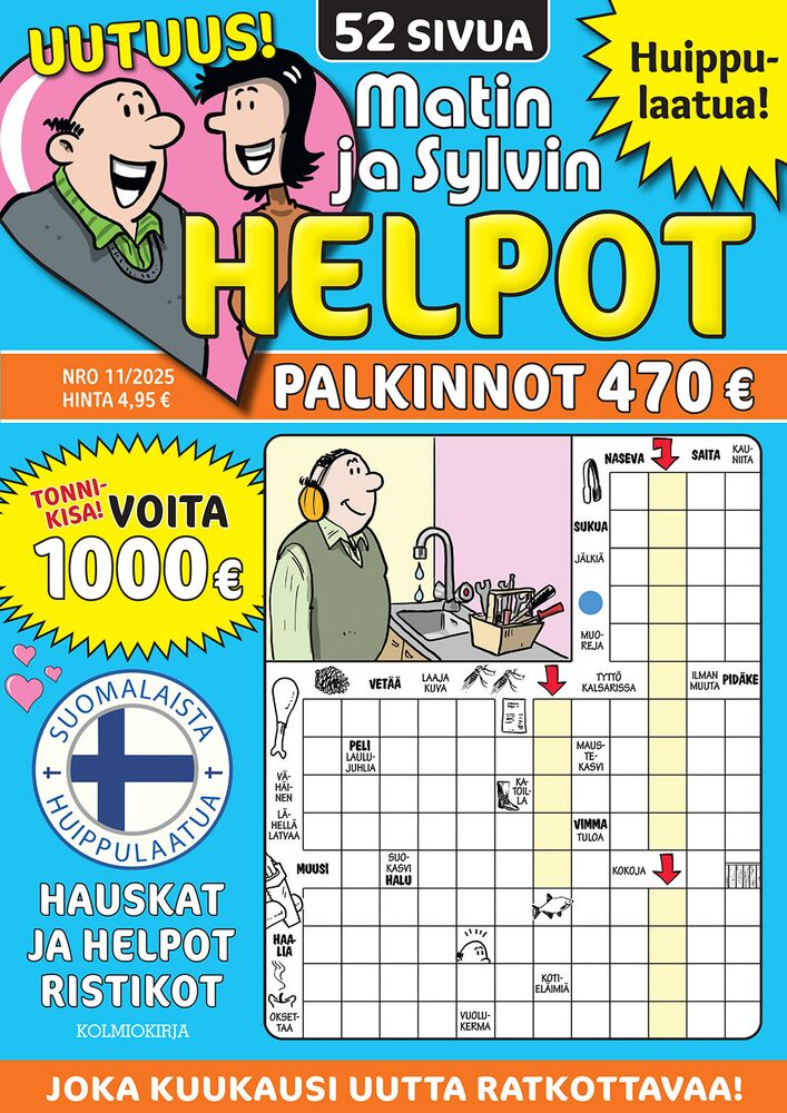 Matin ja Sylvin Helpot tarjoaa parasta ristikkoviihdettä 52 sivua joka kuukausi. Kaikki lehden ristikot ovat uusia ja ennen julkaisemattomia. Vaikeustaso on sopivan helppo ja perinteisten kuvaristikoiden lisäksi joukosta löytyy suosituimpia erikoistehtäviä, kuten tavuristikoita.
