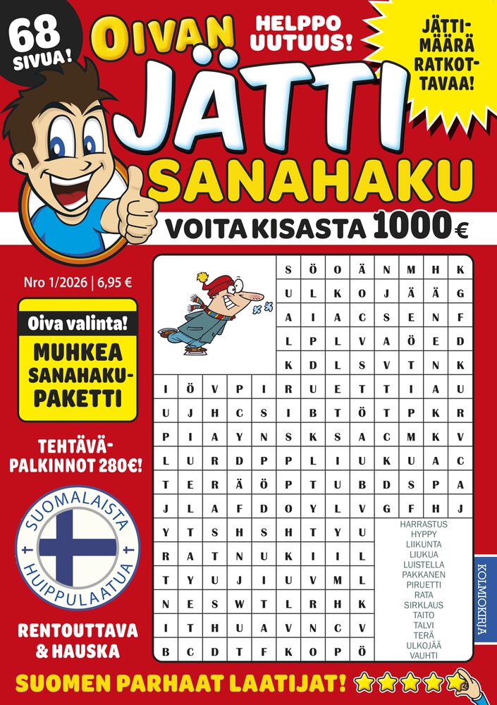 Tilaa lehti Lehtikuningas.fi-sivustolta ja ilahduta itseäsi tai lahjan saajaa lehtilahjalla, joka viihdyttää ja aktivoi mieltä. Oivan Jätti Sanahaku sopii kaikenikäisille, jotka nauttivat ratkomisesta ja haluavat viettää aikaa hyödyllisen harrastuksen parissa.