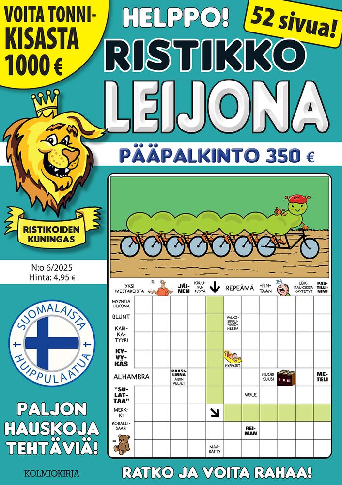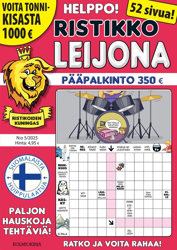 Jos nautit laadukkaista kuvaristikoista ja rentouttavasta aivojumpasta, Ristikko-Leijona on juuri sinulle tehty. Kuusi kertaa vuodessa ilmestyvä 52-sivuinen lehti tuo eteesi Suomen parhaiden laatijamestareiden suunnittelemia ristikoita, joissa yhdistyvät selkeys, hauskat pääkuvat ja sopivan helpot vihjeet. Tämä lehti on ansainnut nimensä – todellinen ristikoiden kuningas!