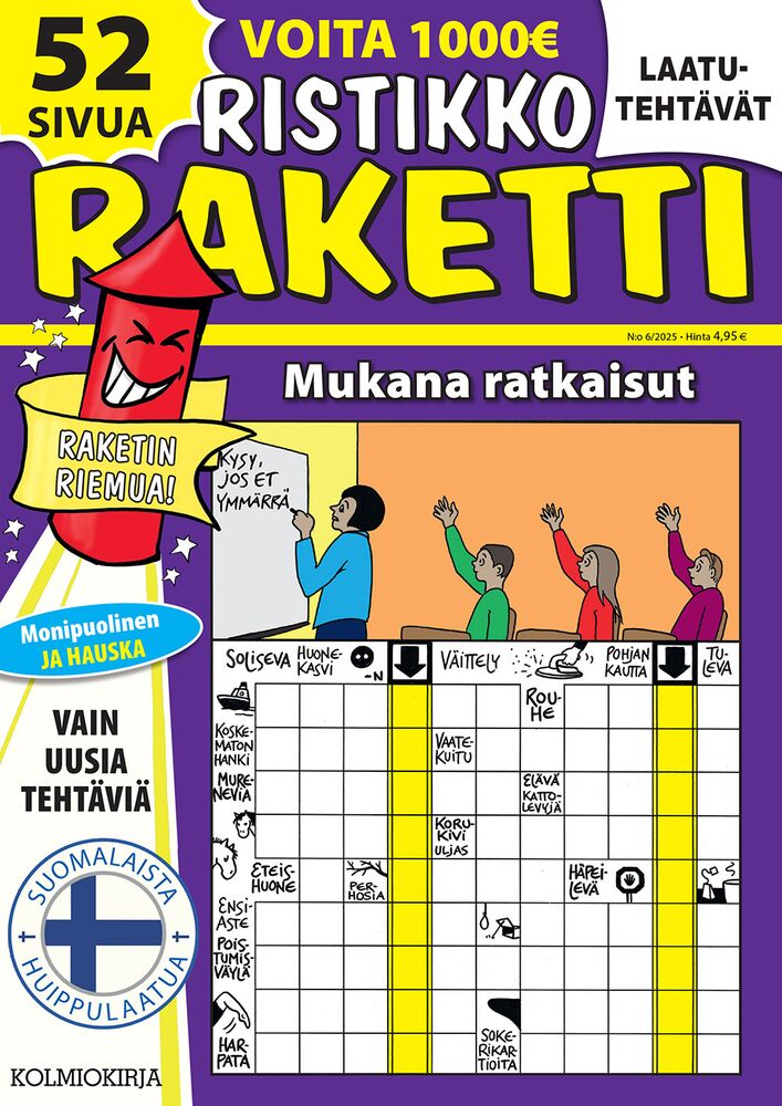 Ristikko-Raketin vahvuus on sen monipuolisuus. Saat lehden mukana runsaasti laadukkaita ristikoita eri vaikeustasoilla, mutta myös hauskoja sarjakuvia keventämään tunnelmaa. Näin voit nauttia sekä aivojumpasta että viihteestä samassa lehdessä – täydellinen yhdistelmä esimerkiksi mökille, matkoille tai sadepäivien iloksi.