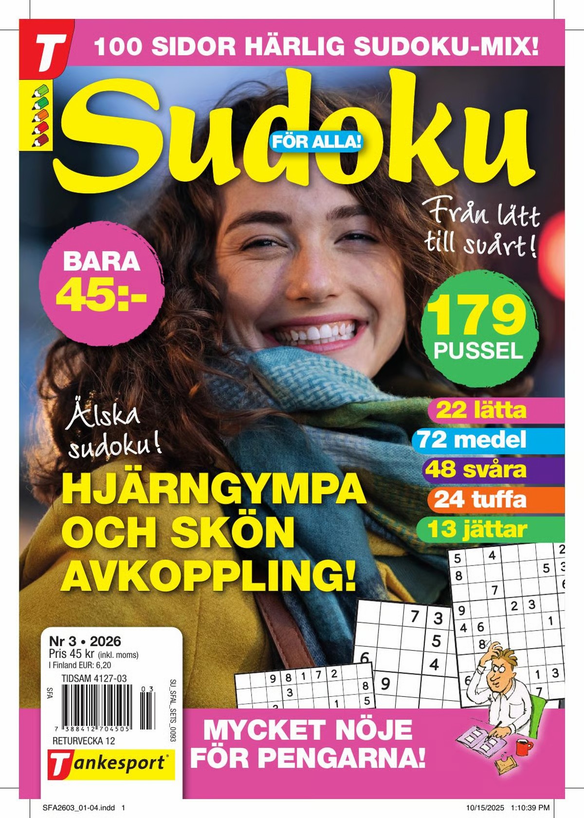 Kompakti koko tekee lehdestä täydellisen kumppanin matkalle, mökille tai vaikkapa työmatkalle. Sudoku för alla on mainio lehtilahja kaikille, jotka rakastavat pulmien ratkomista. Lehti tarjoaa iloa, hyötyä ja aivojumppaa vuoden jokaiselle kuukaudelle. Tilaa itselle tai anna lahjaksi läheiselle, joka arvostaa älykästä ja rentouttavaa tekemistä.