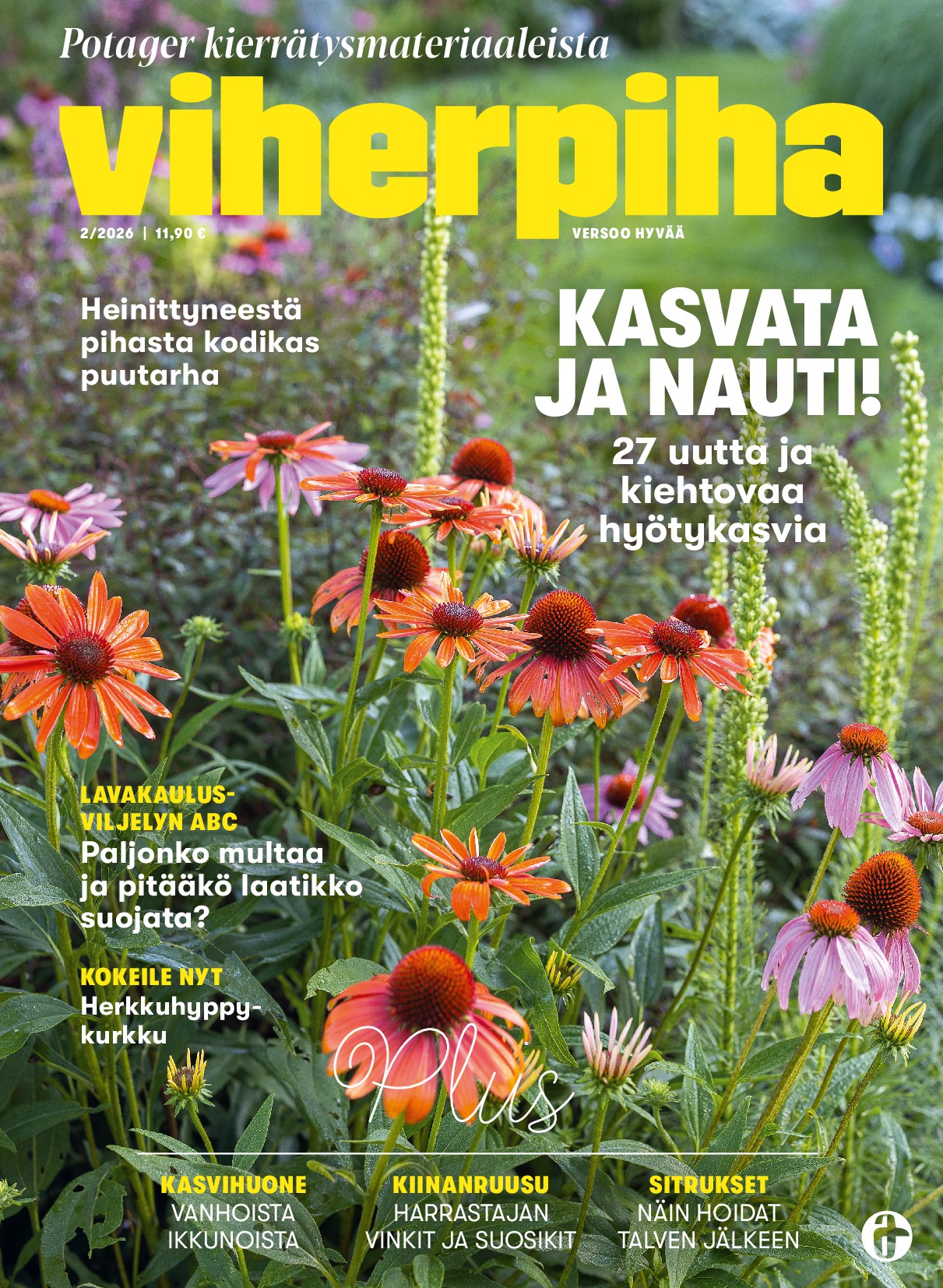 Viherpiha on inspiroiva puutarhalehti sinulle, joka haluat kehittää omaa pihaa, parveketta tai vihersisustusta helposti ja käytännönläheisesti. Lehti ilmestyy suomeksi 12 kertaa vuodessa ja se on yhdistelmä printtilehti ja digilehti, joten voit nauttia sisällöstä sekä perinteisesti että digitaalisesti missä tahansa. Viherpiha sopii erityisesti kotipuutarhureille, kasveista kiinnostuneille sekä kaikille, jotka kaipaavat lisää vihreyttä arkeensa.